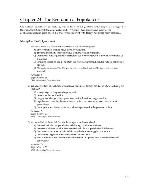 Download Chapter 23 The Evolution Of Populations Answer Key PDF